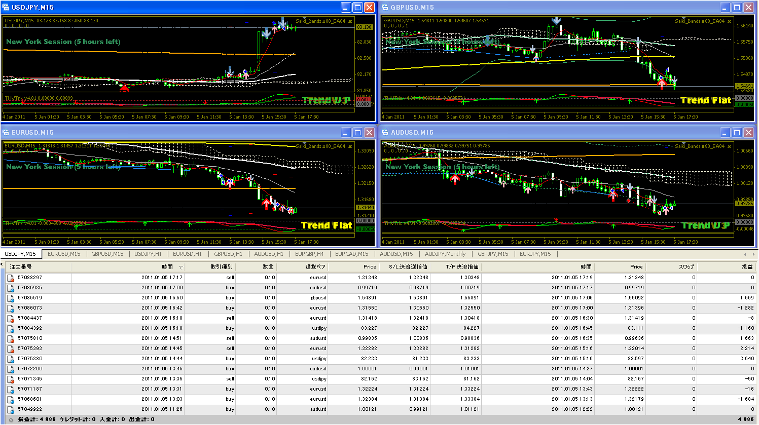11勝3敗(一旦5pips以上含み益を持った場合は勝ちとみなす)