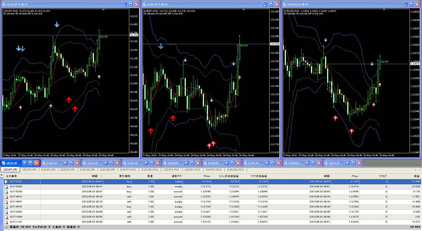 トレード結果(15分足でトレード)です。