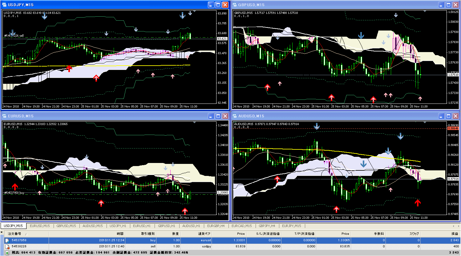 MA、BB+逆張りサインが出たところ、雲抜け+純張りサインなどは、