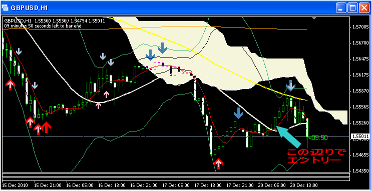 (後で見たら、従来のサインでも15分足で雲を抜けたぐらいで