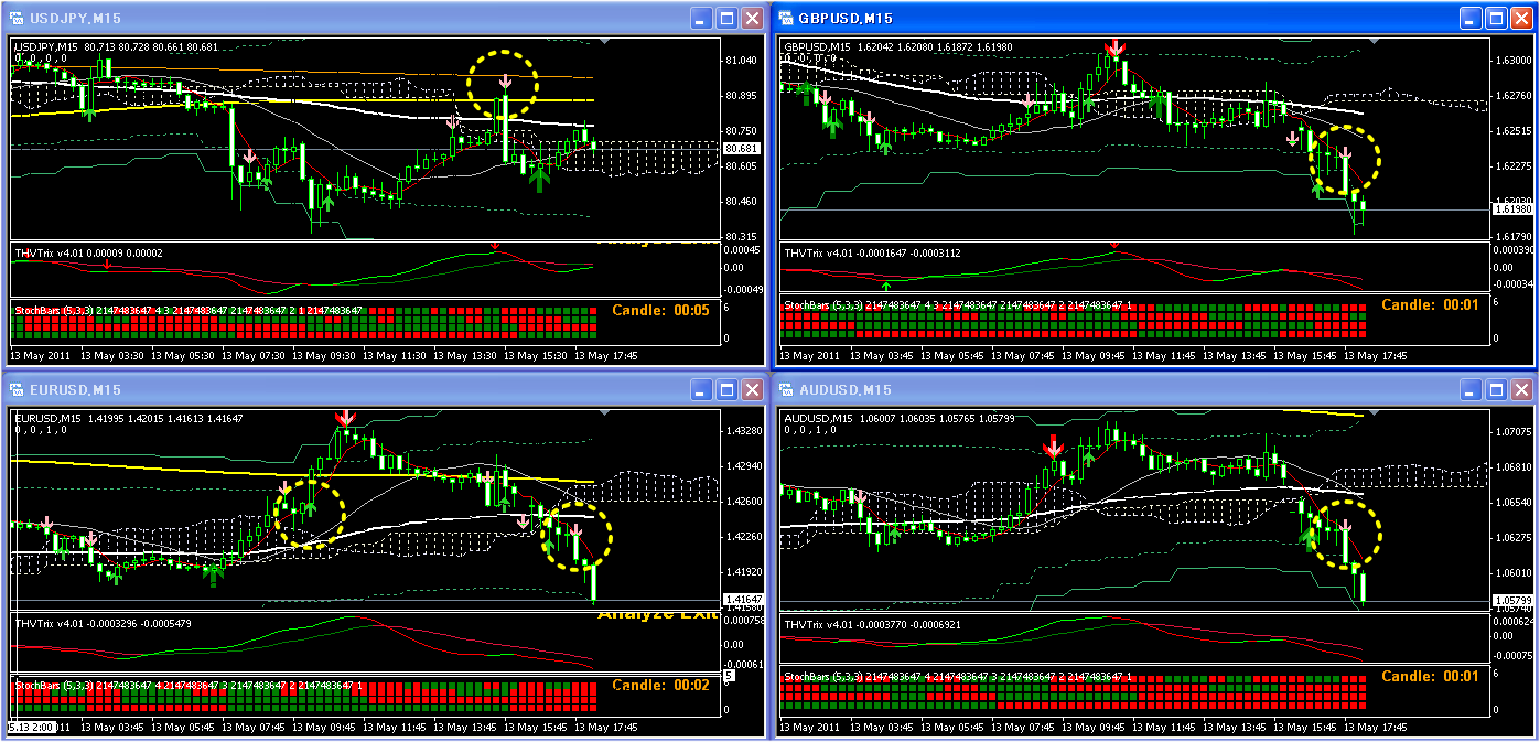 こんばんは、ドル/円は80円台で上下にいったりきたり方向感の無い展開が 続いてますが、日足では雲の下にあり、再び80円割れも否定できません。 その他の監視通貨ペアは、夜中の12時を回ってから、いっせいに 売られだしボーナスチャンス!! サインが出てからでも50pips以上下がってます。 今日のサイン(15分足)です。 ↓ ↓ ↓ ↓ ←クリックすると大きくなります。