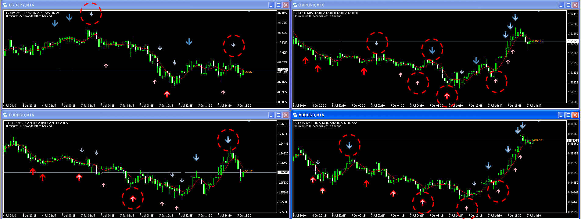 5分や15分だけでなく、4時間などの長い時間軸も見ながら