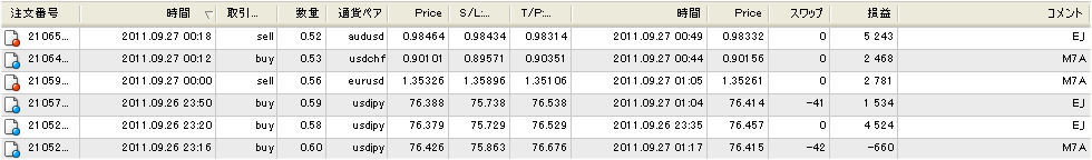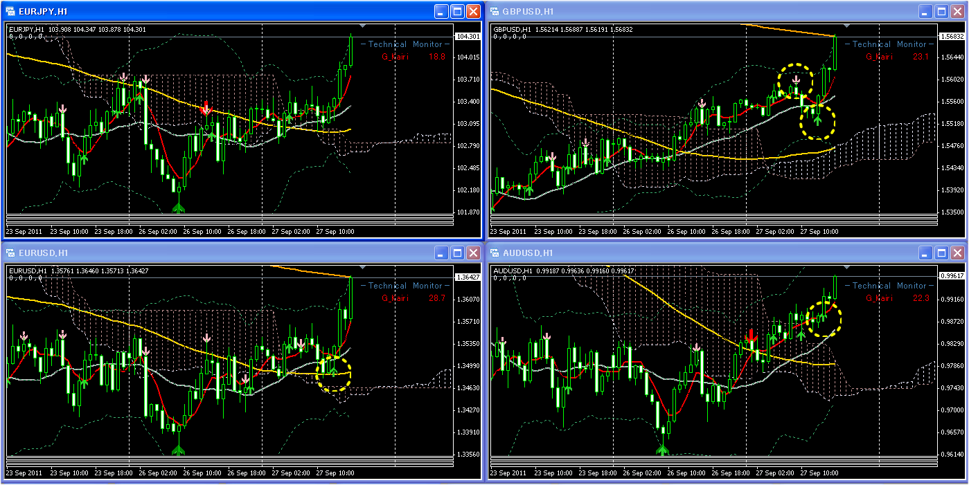 ドル売りの流れに便乗し、ユーロ/ドル、豪/ドルに買いを入れました。