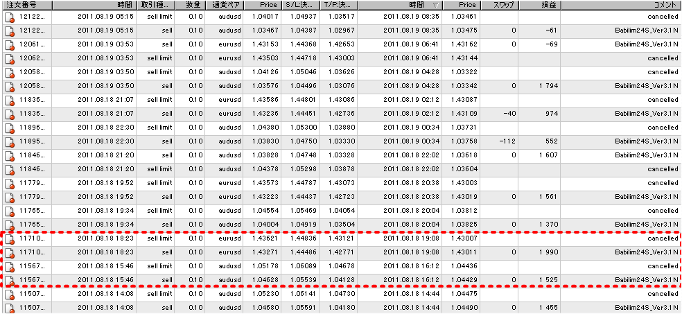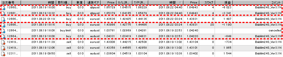 ○現在、検証中のEA(自動売買ソフト)