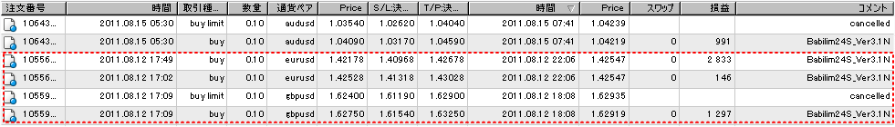 ○現在、検証中のEA(自動売買ソフト)