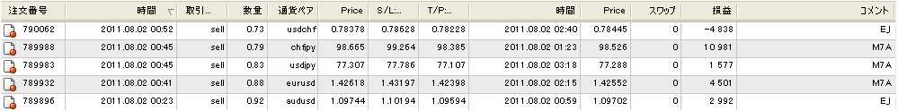 Kさんから、売買履歴(本格稼動7/11~7/30)を送って頂きました。
