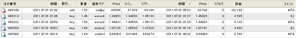 ・EI、M7Aは、朝方に売買を行うスキャルピング型