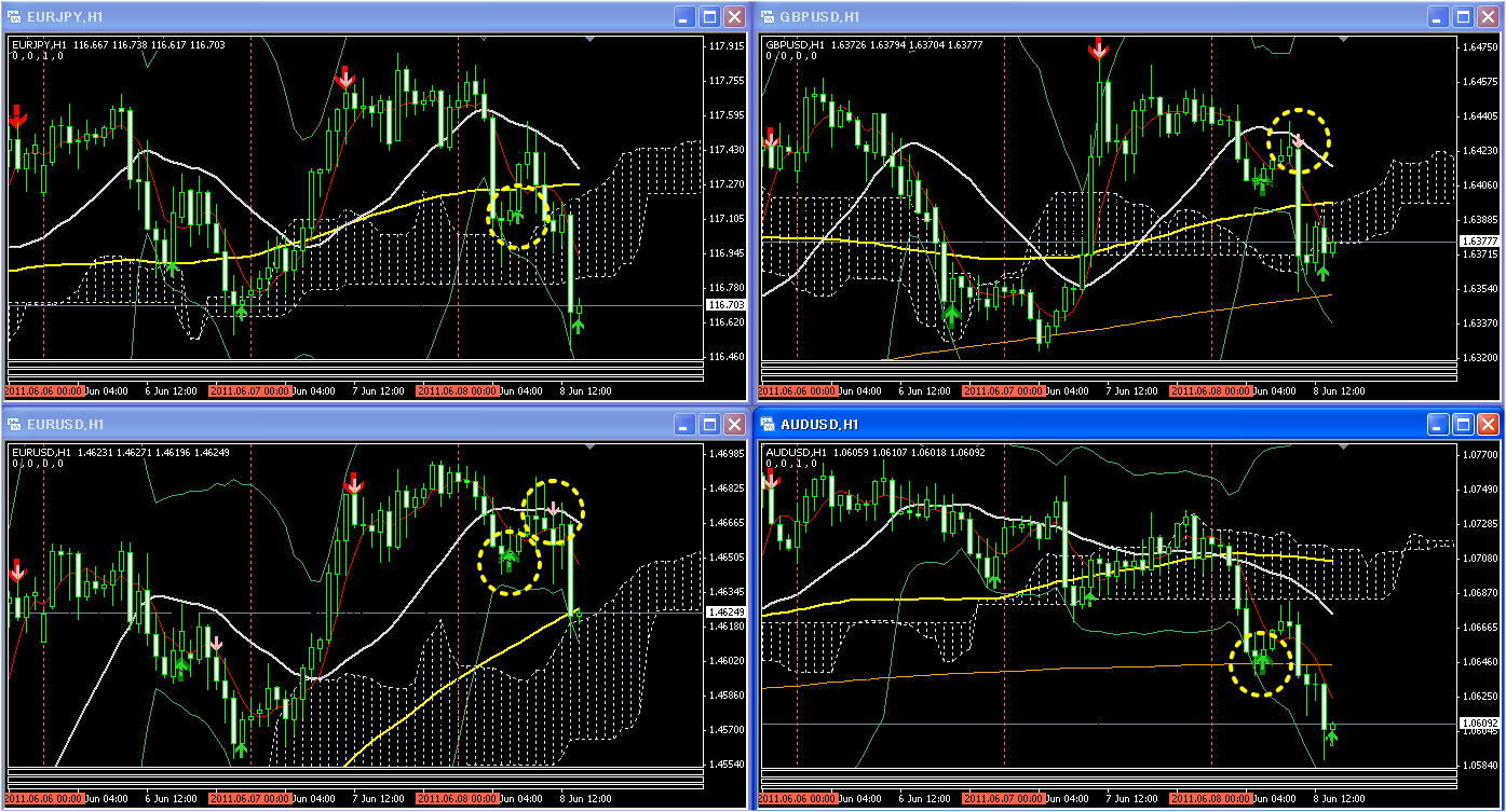 こんにちは、今日は1時間足メインで、昼前からチャートを眺めてますが、