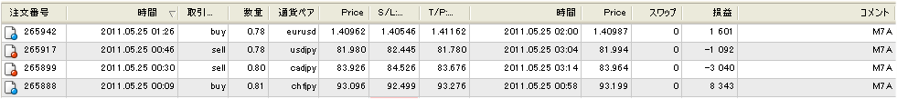 M7Aが2勝2敗ですがプラスに、昨日はEUR/USDが朝から