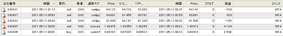 M7Aはドル/円で稼ぎ何とかプラス。しかしどちらも、またCHF/JPYでやられています。