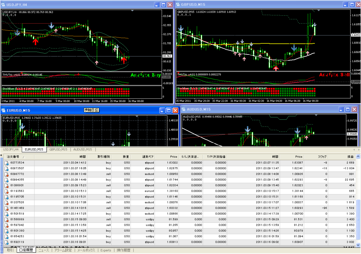 サインで売買するEAを少し改良しました。