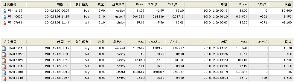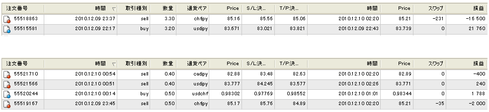 CHF/JPYのトレードも、後で見てみると、最初プラスだったのに