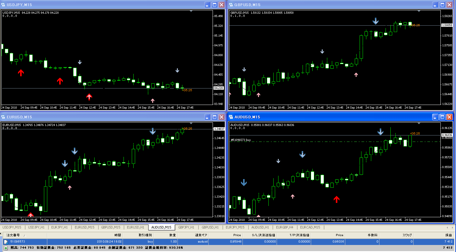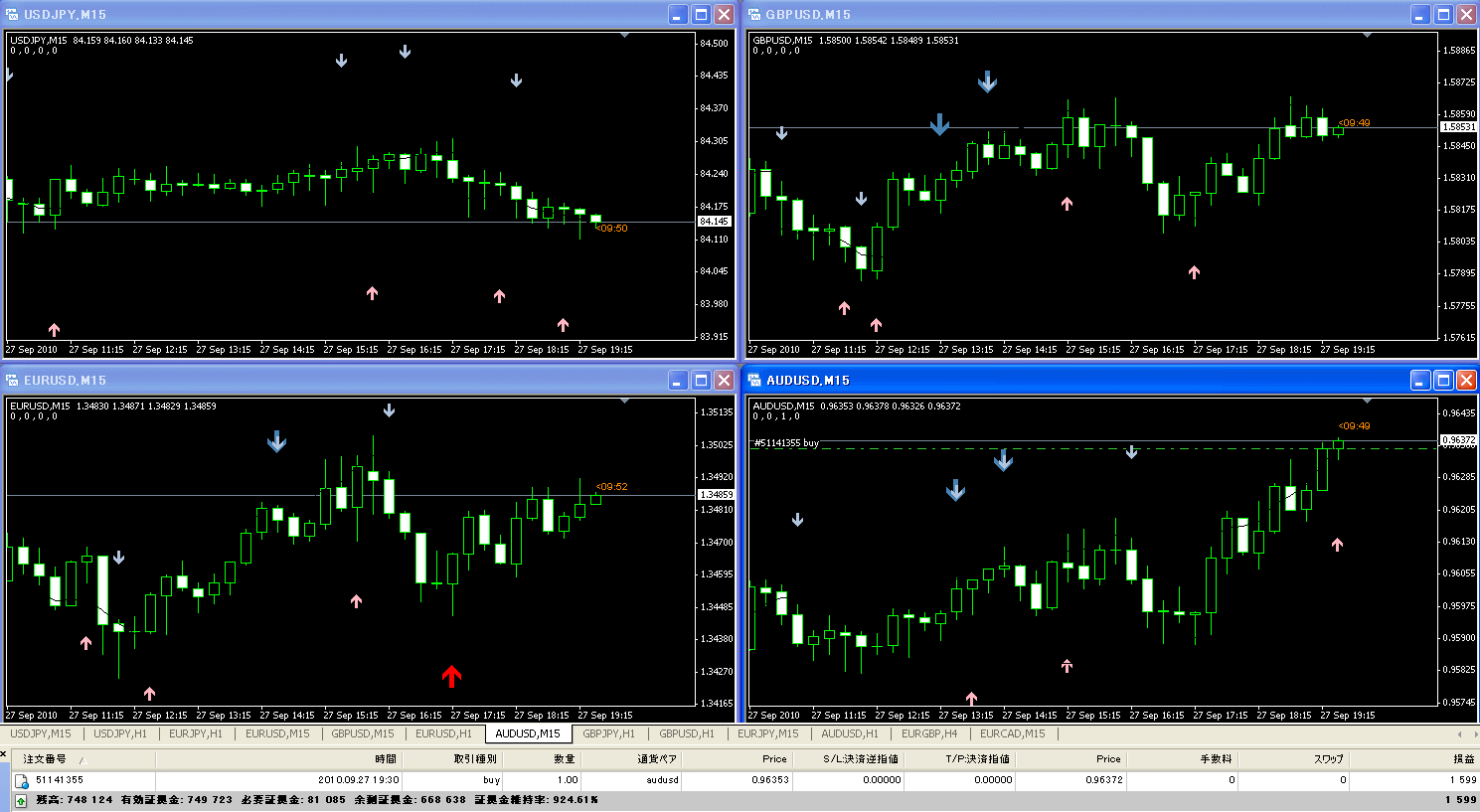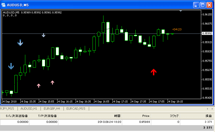 豪/ドル、5分足で押し目を拾って買いサインが出たので、