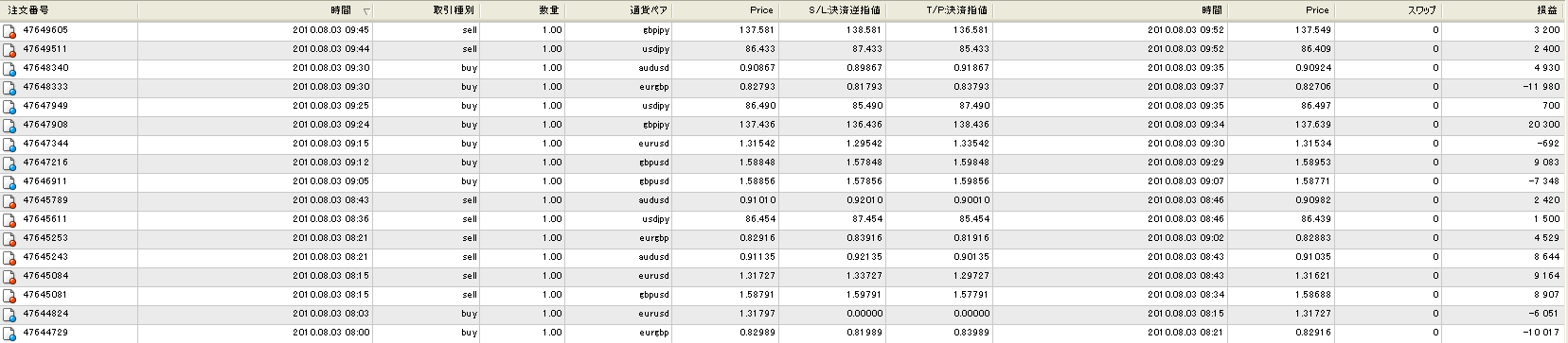 先般(7/30)のメールより 常にロスカットポイントは。。。
