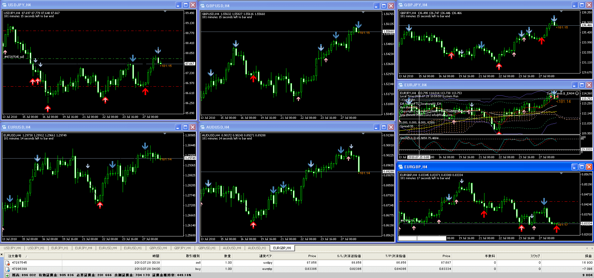 さて、夜中より、調子に乗って4時間足でEA(自動売買)を
