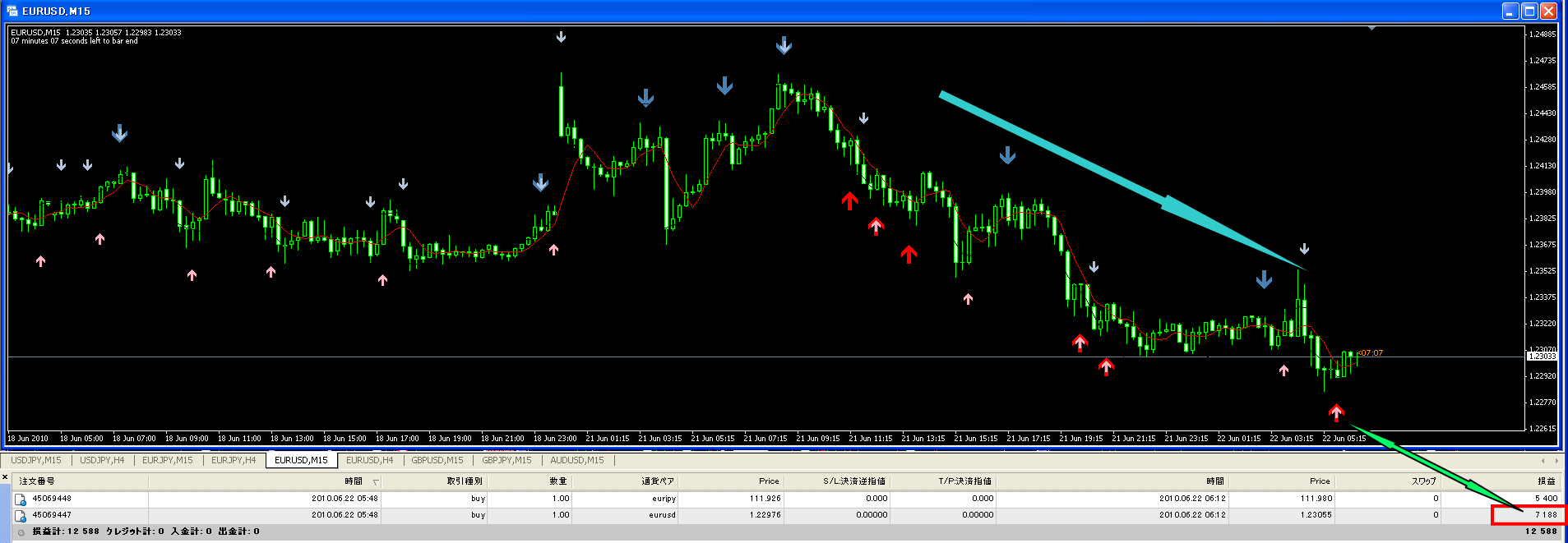 さっきエントリーしたのは、大きな流れは下降トレンド、