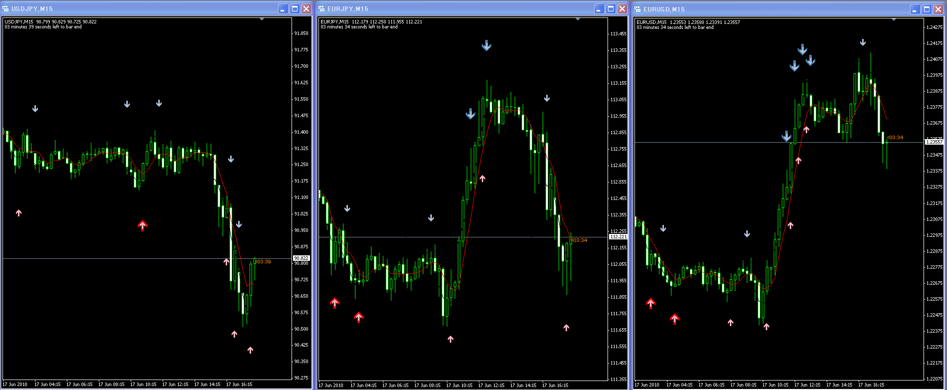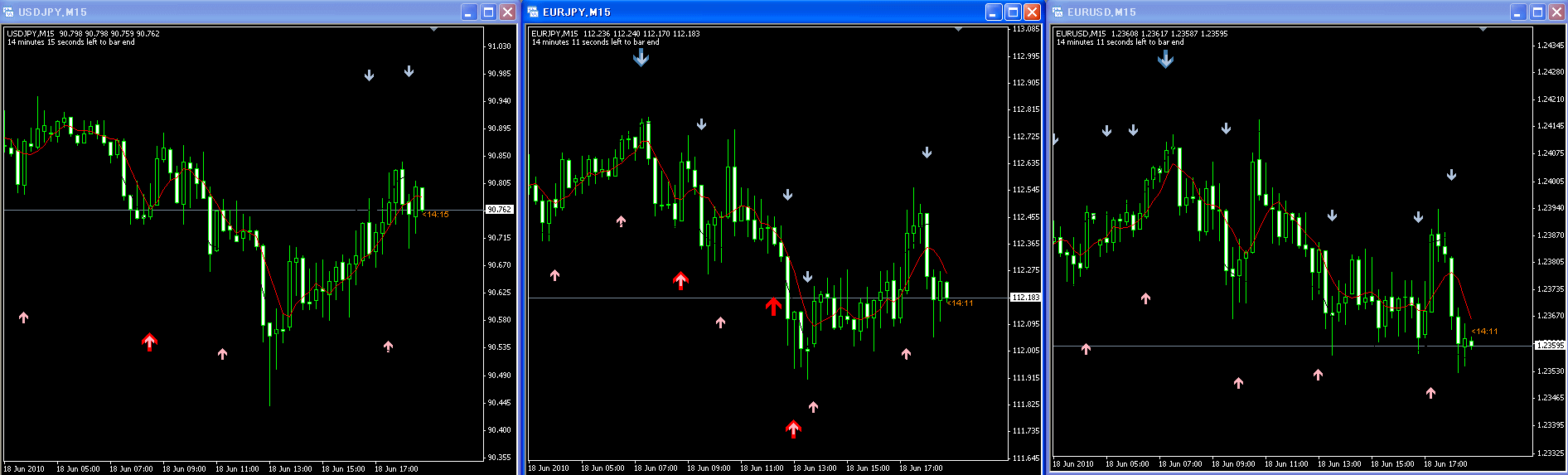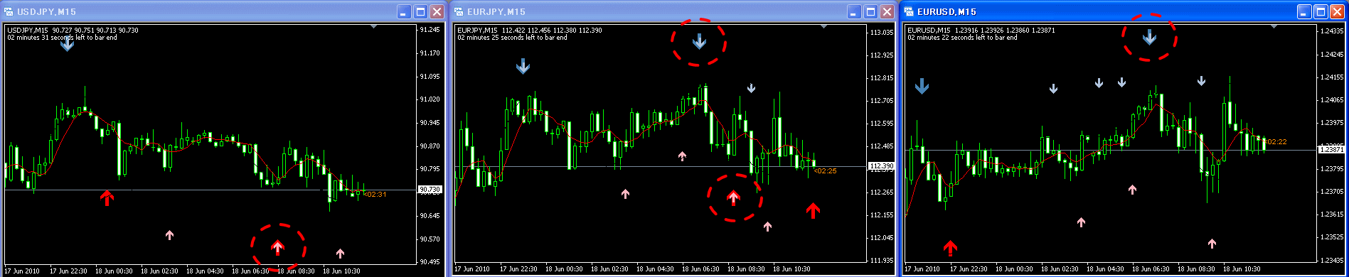 15分足のサインは、どれも欲を出さずスキャルに徹していれば、