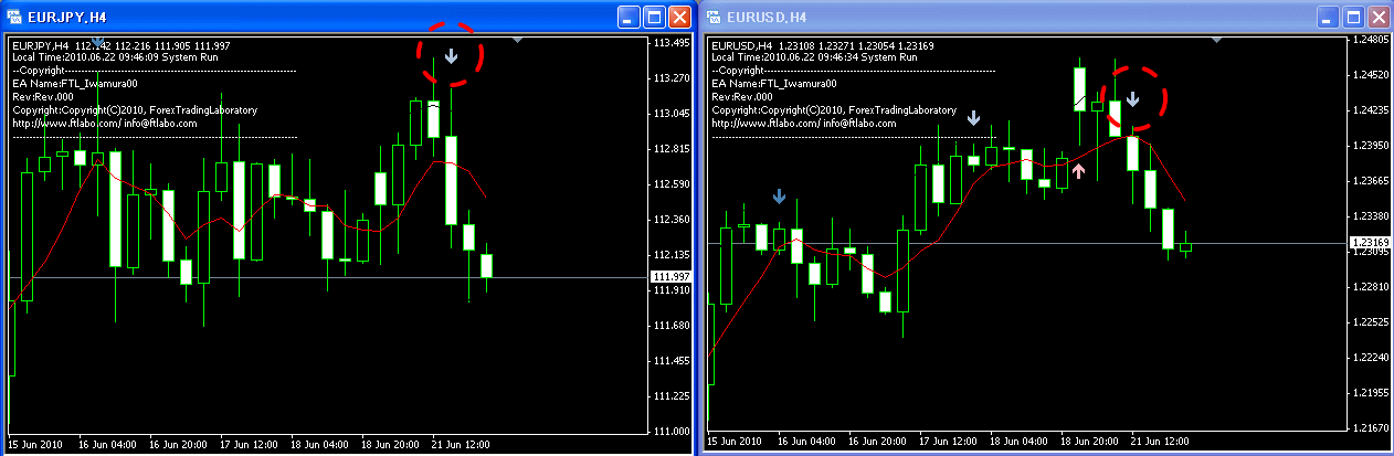 先ほどより、ユーロ円(H4 )にも↓サインが出ましたが