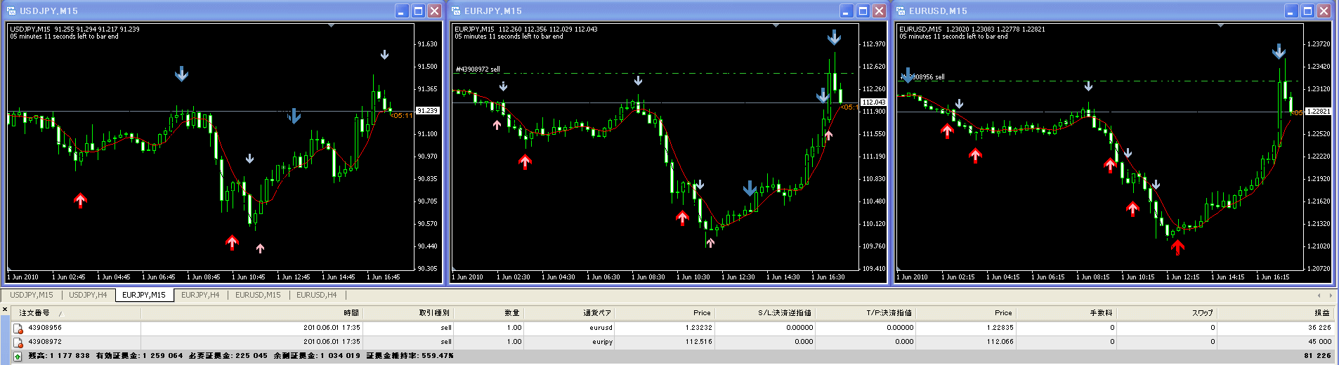 15分足の流れもサインや、モニターで分かります。