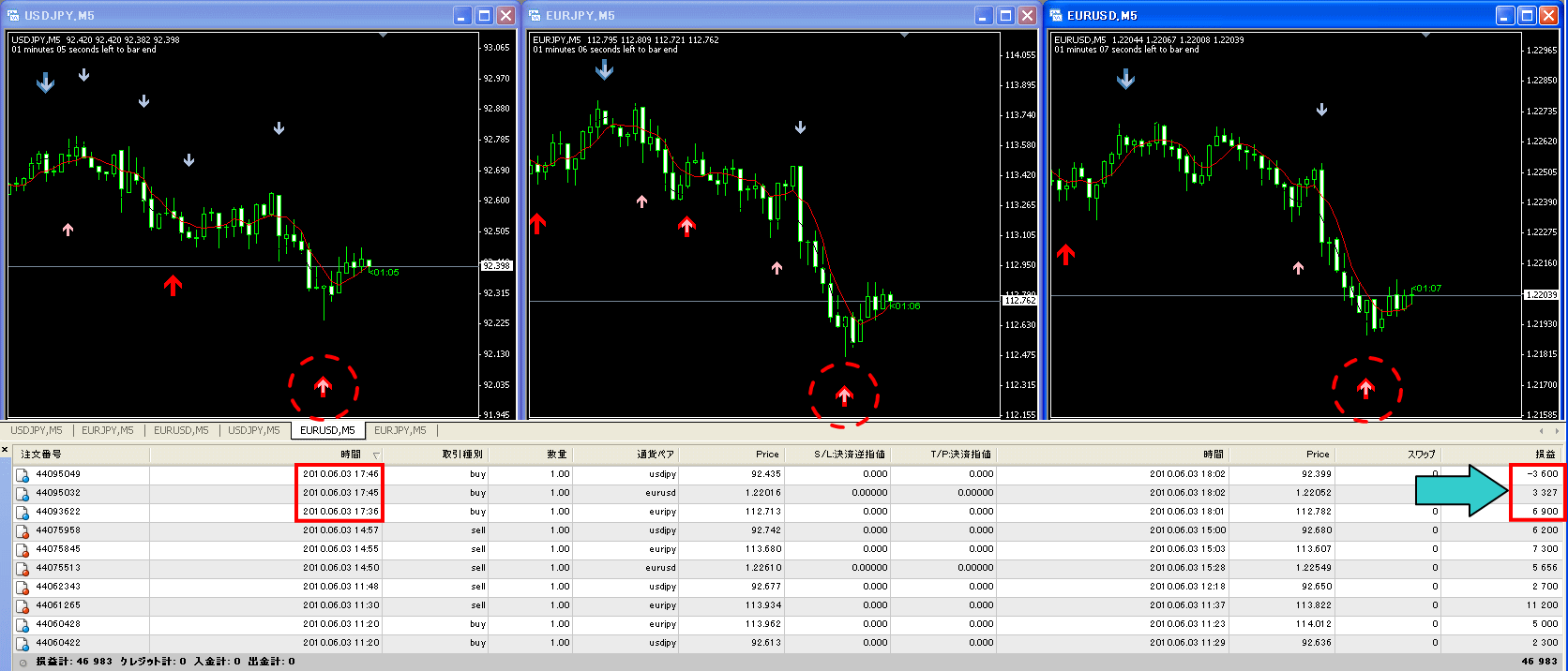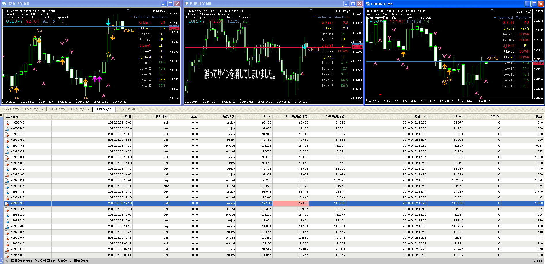 5分足ベースですので、チョコチョコサインが出ますが、