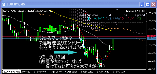 しかし、ユーロ円では、逆張り(買い)で立て続けにエントリー
