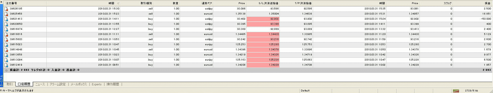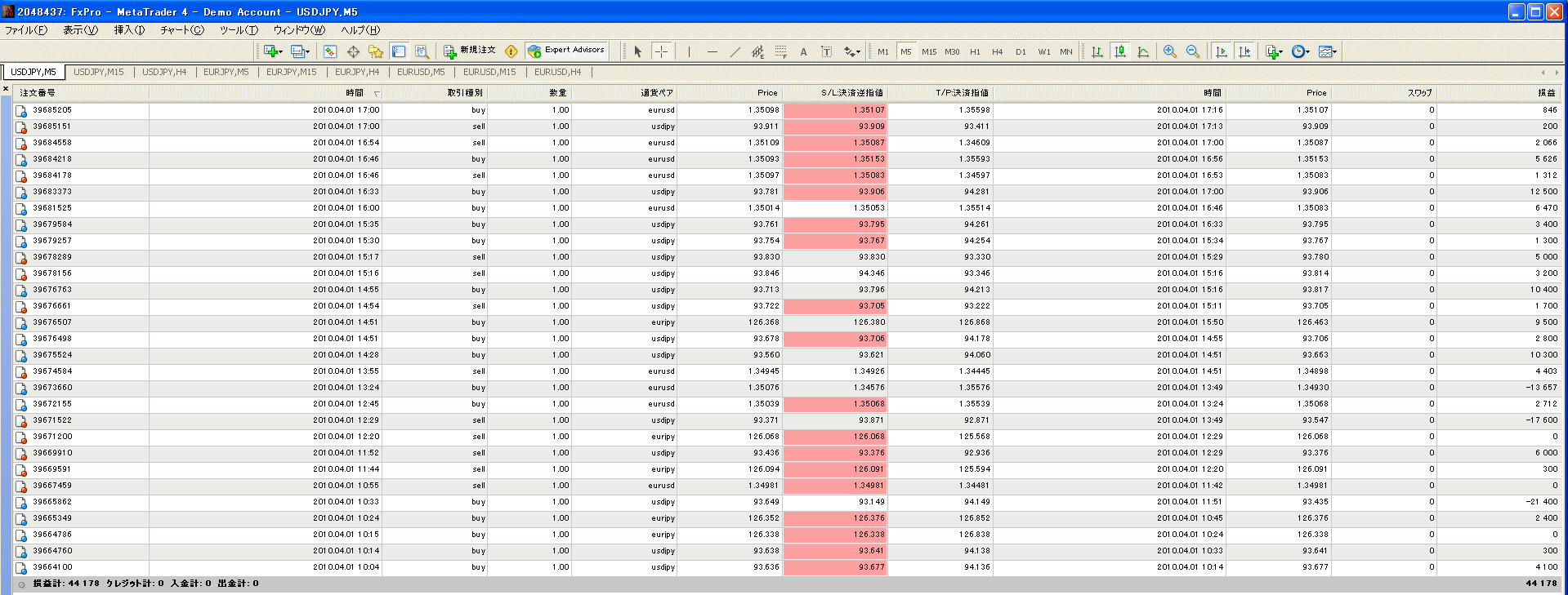 先ほど(15:40)チャートを立ち上げEAを起動させました。