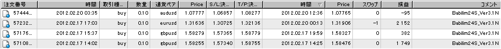 ○現在、検証中のEA(自動売買ソフト)